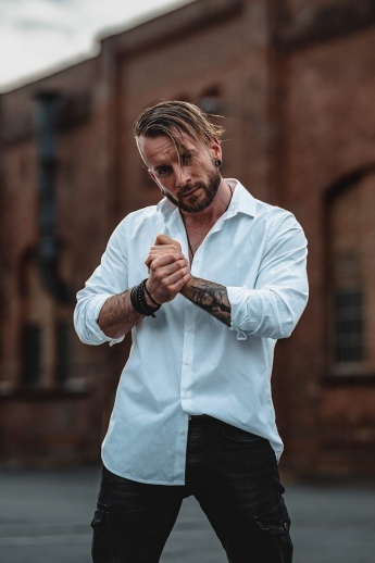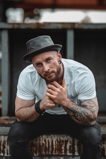- Tattoos: li. Arm, Li. Brust, re. Wade